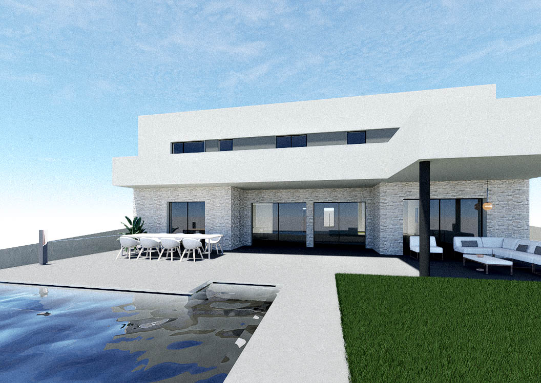 Contiene un programa para una familia grande, desarrollándose en planta baja el vestíbulo de entrada, despacho, 3 dormitorios, 3 baños, aseo, cuarto de instalaciones, cuarto de lavado y plancha, despensa, cocina, salón, comedor, escaleras de comunicación con planta primera y ascensor. El acceso a la planta superior tres dormitorios, cuatro baños completos y una sala de estar. La planta sótano es de garaje. dos zonas de almacén, un trastero y cuarto de herramientas de jardín. Cuenta con piscina al nivel de la planta baja y una pista de padel. Se diseña desde el inicio para ser certificada por el Passivhaus Institut, por lo que se trata de una casa pasiva de muy bajo consumo energético. Los huecos de fachadas se optimizan para logra el máximo ahorro de energía y además disponen de elementos de protección solar de cara a limitar las ganancias de radiación solar en verano. Al tratarse de una vivienda passivhaus, se garantiza un elevado confort interior durante todo el año. La construcción es mixta con pilares metálicos y elementos horizontales, losa y forjados, de hormigón armado. Los cerramientos son de termoarcilla con un sistema de aislamiento térmico por el exterior, SATE, de 16 cm, sistema que conforma la envolvente térmica de la casa, completamente libre de puentes térmicos. Los huecos de la vivienda están dotados de acristalamientos triples con gas argón y carpinterías de PVC de alta calidad y prestaciones térmicas. Cubierta plana con 20cm de aislameinto. En cuanto a las instalaciones, esta vivienda cuenta con suelo radiante y refrescante. Además, dispone de renovación de aire interior de forma constante y controlada que se realiza mediante un equipo de ventilación mecánica y un recuperador de calor, gracias a los cuales la calidad del aire es óptima todo el año.