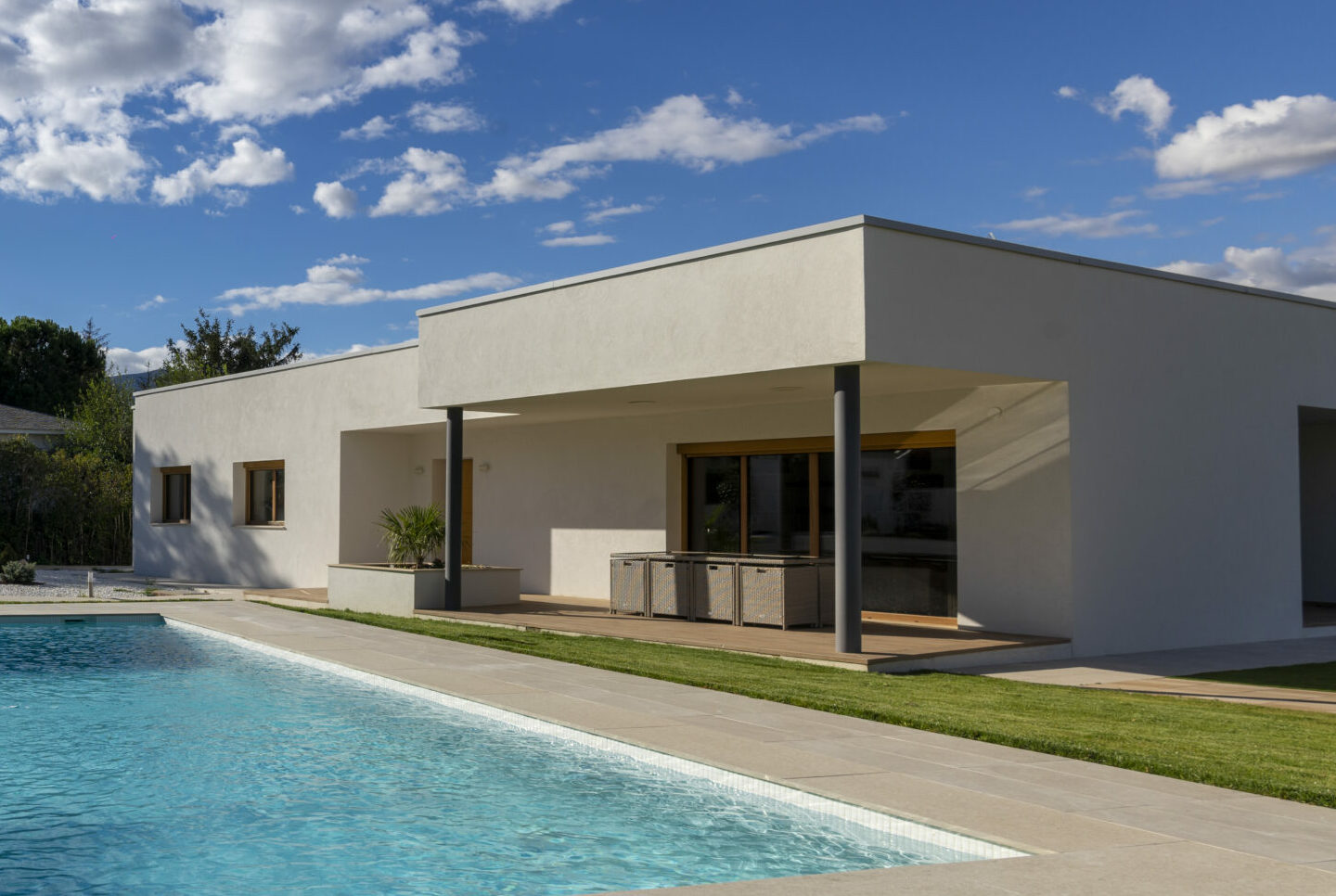 Esta vivienda passivhaus certificada de Soto del Real se desarrolla en una sola planta, sobre una parcela de algo más de 1200 m2, con ligero desnivel hacia el noroeste.