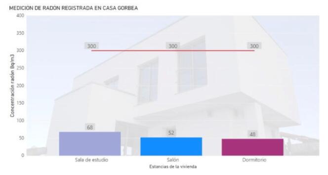 En todos los casos, los resultados de las tres viviendas analizadas en el laboratorio LARUC acreditado por ENAC muestran valores de la concentración de radón inferiores a 100 Bq/m3. Para estar en una zona de alto potencial según el mapa CSN (Consejo de seguridad nuclear) representa valores inferiores incluso al recomendado por la OMS.